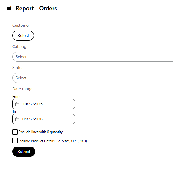 Now available from the 'Manage' dashboard menu is the Orders Report. This provides users with a raw data orders report (.xlsx) that can be filtered by catalog, order status, and date range. Once submitted the report will go to your Elastic Print Jobs queue.