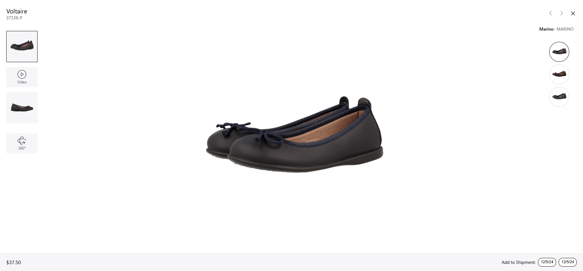 Clicking the product will open a product media modal, which offers you a detailed view of any available product assets. This view can be used to view alternate images, product videos and 360 images. You can add products straight to your cart, or move between different products using the arrow buttons.