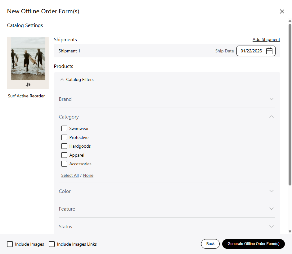 When creating your Offline Order Form, you can now select multiple ship dates. These dates will be uploaded as separate shipments.